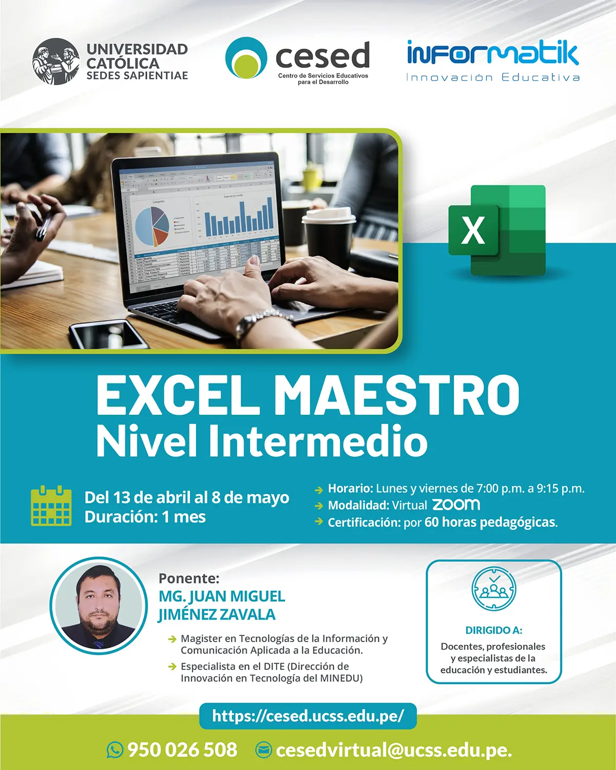 En el contexto actual, donde la capacidad de tomar decisiones informadas y eficientes es crucial, contar con herramientas avanzadas de análisis de datos es esencial. El curso Excel Maestro Intermedio se enfoca en desarrollar habilidades más sofisticadas para aquellos que ya dominan lo básico y desean profundizar en el uso de funciones avanzadas, gráficos y tablas dinámicas. A lo largo de 50 horas de formación, los participantes aprenderán a automatizar procesos, elaborar reportes complejos y aplicar técnicas de análisis que mejoren la calidad de la información presentada. Este curso es especialmente relevante para docentes y profesionales que buscan optimizar sus tareas administrativas, generar informes claros y tomar decisiones basadas en datos confiables. Con un enfoque práctico, el curso permite a los participantes integrar herramientas de análisis de alto nivel a su día a día, mejorando la toma de decisiones y facilitando la gestión educativa y profesional de manera más eficiente.